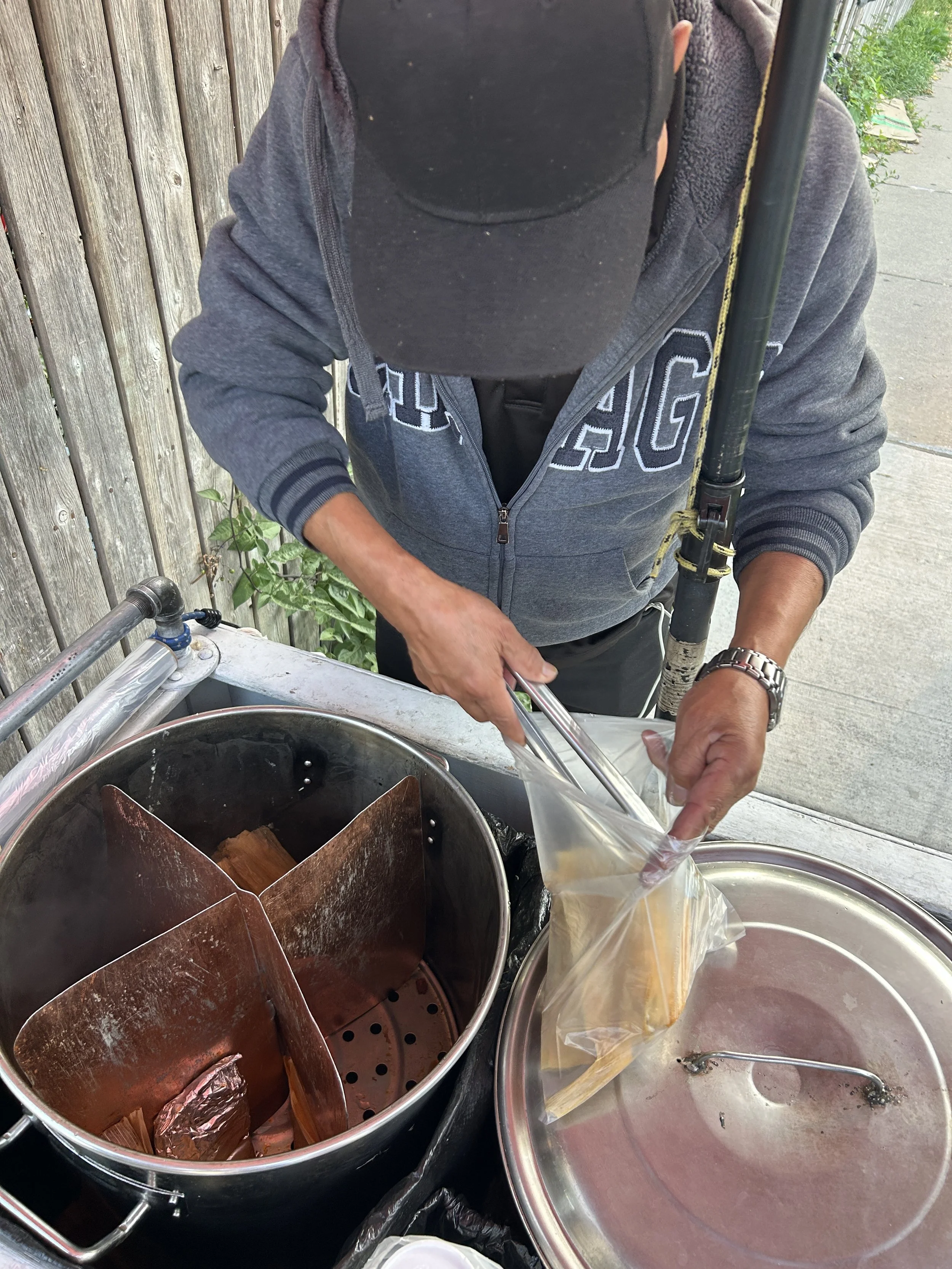 Our mutual aid efforts all started with Vendor Buyouts. We meet at a pre-determined location, ride around visiting street vendors, and buying everything they have so they can go home and be safe with their family. We then ride around passing out the food to hungry Chicagoans at encampments, shelters, and Love Fridges. CxS supporters contribute the funding used to purchase the food.